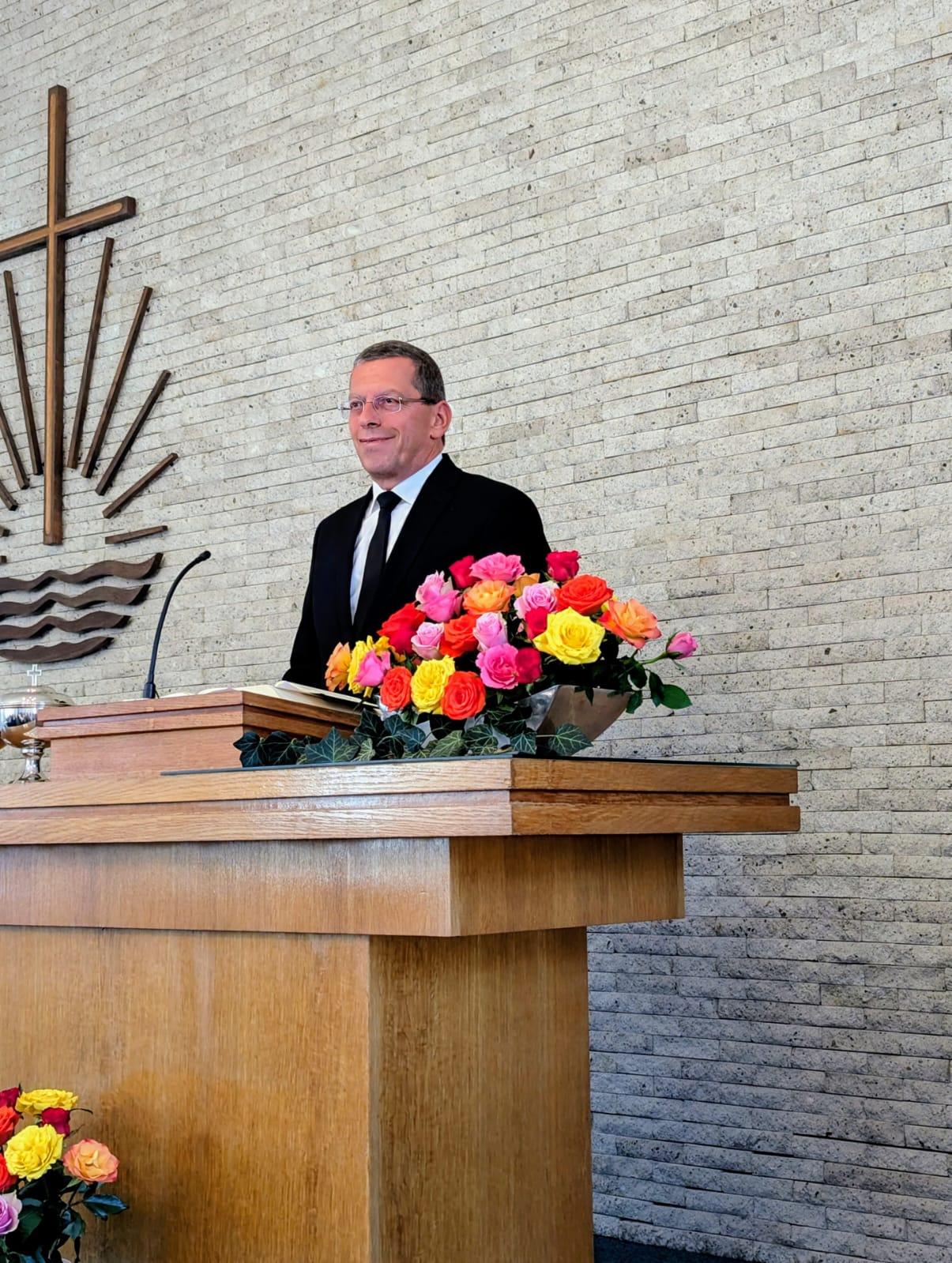 Im Hinblick auf das Bibelwort führte Apostel Kasper aus, dass Gott sich – auch als das Volk Israel Fehler gemacht hatte – als „Bündnispartner“ erwiesen habe. Und das ist auch heute noch so: „Gott ist ein verlässlicher Bündnispartner, der sagt: Ich bin da, du kannst immer kommen!“ Dies sei ein Vertrag – oder noch besser: eine Zusage – ohne Bedingungen zu Gegenleistungen und ohne „Kleingedrucktem“. Und gerade weil diese Liebe so bedingungslos gelte, seien wir aufgefordert, auch Gutes zu tun. Für Kinder sei es nicht förderlich „wenn Eltern nur mit dem Handy vor der Nase durch die Gegend laufen“, sie bräuchten Blickkontakt, so Apostel Kasper. Gott habe „kein Handy vor der Nase“. Nun sei es an uns, diese Nähe Gottes zu erwidern – und auch „Blickkontakt“ zu unserem Nächsten zu suchen. Das tut uns gut!